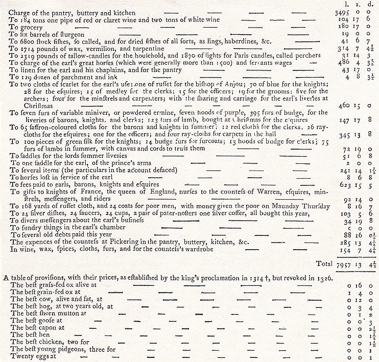 ‘7 cartloads of gold cloth, silver vessels and other ornaments to the value of £300; £40 worth of goods and a barrel of sturgeon’ for which he was fined £70.